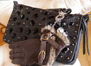 キラキラブレスレットと薬指に指輪がキラリ リングとブレスレット ビジュー レザー グローブ 革手袋(返品交換ギフト包装不可)レディース 女性 かわいい おしゃれ ショートグローブ ラムレザー 羊革 ドライブ プチプラ ブラック 黒