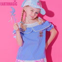[341-541]EARTHMAGIC アースマジックEARTHMAGIC【正規取扱店】アースマジック ストライプ切替オープンショルダーTシャツ ピンク サックス マフィー 女児 女の子 子供服 キッズ トップス ブルー 青 100-140cm【50%OFF】