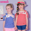 [341-592]EARTHMAGIC アースマジック【EARTHMAGIC正規取扱店】アースマジック 袖リボン肩開きテレコボーダーTシャツ マフィー 女児 女の子 子供服 キッズ トップス 赤 レッド 青 半袖 100cm 110cm 120cm 130cm 140cm【50%OFF】