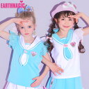 [341-601]EARTHMAGIC アースマジック【EARTHMAGIC正規取扱店】アースマジック レース袖セーラーカラーTシャツ マフィー 女児 女の子 子供服 キッズ トップス 白 ホワイト 水色 半袖 100cm 110cm 120cm 130cm 140cm【50%OFF】