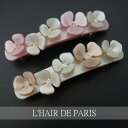 【定型外郵便対象商品】送料290円♪【5400円以上宅急便送料無料】■L'HAIR DE PARIS■■シェル模様レオパード豹4フラワーお花バレッター■ヘアアクセサリー■フランス製セルロース■薔薇■髪留め髪飾り■