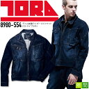 自在に動けるストレッチデニム。 サイドのラインがシャープなスポーツテイストのウェア。【10%OFFクーポン★6h限定1/25】寅壱 トライチ デニム 作業着 長袖ブルゾン 8990-124 デニムジャケット ストレッチ オールシーズン 8990シリーズ 作業服 作業着