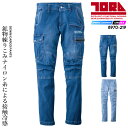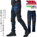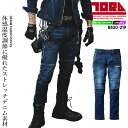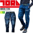 脇の立体的なカーブが特徴のトラスタイルパンツは、ヒップ周りにゆとりが有り開脚し易く、膝から裾にかけて細くなる。【10%OFFクーポン★6h限定1/25】寅壱 トライチ デニム トラスタイルパンツ ストレッチ 8830-720 カーゴパンツ ズボン オールシーズン 8830シリーズ 作業服 作業着