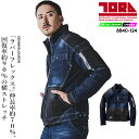 伸縮率約70%、回復率約90%、10ozデニムブルゾン。RUBBER FLEX強いストレッチ性。再帰性反射のオリジナルプリント2カ所配置。【10%OFFクーポン★6h限定1/25】寅壱 トライチ デニムブルゾン 8840-124 高強度 ストレッチ 再帰性反射 ジャケット ジャンパー オールシーズン 作業服 作業着 トライチ