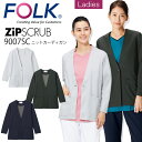 スクラブと同じく工業用洗濯にも対応した、伸縮性の高いニット素材のレディース用カーディガン。ニットカーディガン フォーク 9007sc 女性用 レディース ストレッチ 長袖 医療 医師 薬剤師 医療白衣 歯科医師 看護師 介護 病院 施設 クリニック 受付 ナース ユニフォーム FOLK 介護福祉士 工業洗濯 紫外線防止加工 ストレッチ