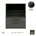 キッチンボード 160 cm 幅 収納 ハイボード 開き戸 可動棚板 引出し 塩ビシート コート紙 メラミン スリム キッチン収納 食器棚 ダイニングボード 灰色【P15倍! ~12/15 23:59】 キッチンボード 160 オープンボード 食器棚 レンジ台 キッチン収納 完成品 コンセント付き 電子レンジ台 幅 160 cm レンジボード 収納 引き出し 家電収納 セラミック調 クアドロレール モイス 引出し 引き戸 ブラック BK 黒