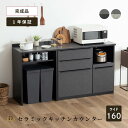 カップボード 幅160 カウンター キッチン レンジボード キッチンボード 奥行40cm キッチンボード 食器棚 収納棚 黒 お洒落 シンプル モダン レンジ高級感【P5倍! ~12/15 23:59】 キッチンカウンター テーブル 160cm 石目調 セラミック 天板 レンジ台 おしゃれ ブラック 奥行45cm コンセント付き 引き出し スライドカウンター キッチン収納 炊飯器 キッチンカウンター 収納