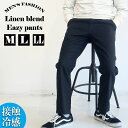 サラッとひんやり涼やかな履き心地 麻入り接触冷感イージーパンツ【選べる股下】接触冷感 メンズ パンツ ゴルフ スラックス アンクルパンツ ゆったり リネン 麻 涼しい ボトムス パンツ M L LL 股下65cm 股下70cm 清涼 涼感 薄手 イージーパンツ ズボン エアパンツ エアパン テレワーク ビジネス オフィス