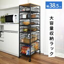 バスケットワゴン スチールラック 大容量収納ラック 幅38.5cm大容量収納ラック 幅38.5cm キッチン収納 バスケット ランドリー収納 洗面所 バスケットワゴン ラック リビング収納 キャスター付き カゴ スチールラック スチールバスケット 隙間収納 ウッドラック 脱衣所 スリム パントリー収納 高さ143cm