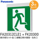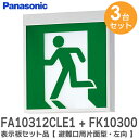 パナソニック ( Panasonic ) LED誘導灯FA20312CLE1 + FK20300 表示板セット品【 3台セット 】【 避難口用片面型・左向 】 ( FA20312CLE1 天井直付型・壁直付型 LED誘導灯 B級・BL形 (20B形) と FK20300 避難口表示板 左 B級BL・BH兼用 直付用 のセット) パナソニック ( Panasonic )【 在庫あり 】