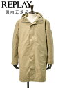 【2025/26秋冬新作】 REPLAY M8470 国内正規品 リプレイ メンズ ワックスコットンナイロン オーバーサイズ 中綿入りフーディーコート【ポイント8倍 マラソン期間中】リプレイ REPLAY 中綿フーディーコート メンズ ロングパデッドジャケット ワックスコットンナイロン生地 ベージュ オーバーサイズ ブランドダイヤモンドロゴ 釦付きサイドベンツ仕様 国内正規品 でらでら 公式ブランド