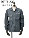 【2025/26秋冬新作】 REPLAY M4145A 国内正規品 リプレイ メンズ デニムシャツ ヘリンボーン柄 スナップ釦フロントリプレイ REPLAY シャツブルゾン メンズ コットンポリ インディゴ ヘリンボーン レギュラーカラー リラックスフィット 国内正規品 でらでら 公式ブランド