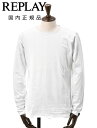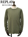 【2025/26秋冬新作】 REPLAY M3590A 国内正規品 リプレイ メンズ 天竺コットン ダメージ風デザイン 長袖カットソーリプレイ REPLAY 長袖Tシャツ メンズ クルーネックカットソー ダメージ風デザイン コットン 綿100% オリーブ 左袖ブランド織りタグ 薄手仕様 レギュラーシルエット 国内正規品 でらでら 公式ブランド