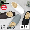人気のmozレザースリッパがボア仕様に!【送料無料】 moz モズ sweden ボア レザー ルームシューズ スリッパ ウォッシャブル 冬用 バブーシュ あったか 洗える 手洗い レディース メンズ 合皮 合成皮革 すべり止め おしゃれ 新生活