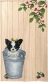 暖簾【のれん】 Papillon in bucket【犬雑貨・犬グッズ・パピヨン】