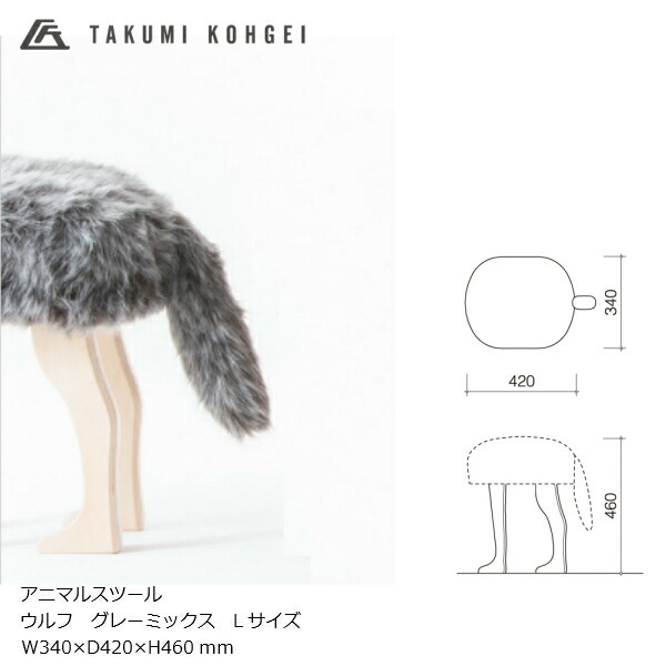 匠工芸 ANIMALSTOOLアニマルスツール ウルフ グレーミックス Lサイズ