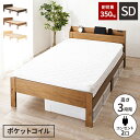 高さ調節 木製ベッド 宮棚付き ポケットコイルマットレス セット すのこベッド ブラウン ナチュラル 茶色 宮棚 高さ調整 頑丈 天然木 シンプル【レビュー特典付き】【耐荷重350kg】ベッド セミダブルベット セミダブルベッド ベット 収納付き マットレス付き コンセント付き すのこ セミダブル おしゃれ セミシングルベット 木製 ベッド下収納 宮付き ポケットコイル マット付き