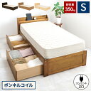 ボンネルコイル マット付き マットレス付 引き出し 棚付き コンセント付き オシャレ お洒落 北欧 一人用 スノコ 宮付き 木製ベット 木製ベッド ナチュラル 新生活 一人暮らし ブラウン【最大全額タダ11/10限定で当選確率2分の1】【耐荷重200kg】シングルベッド マットレス付き 引き出し付き 収納付き ベッド ベット ベッドフレーム 収納付きベッド すのこ おしゃれ シングルベットフレーム 木製 シングル 天然木 シンプル 頑丈 白 ホワイト