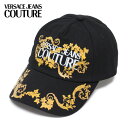 VERSACE JEANS COUTURE 2024-25年秋冬新作【楽ギフ_包装】ヴェルサーチ【ファッション雑貨・小物】帽子ヴェルサーチ VERSACE JEANS COUTURE ベースボールキャップ BASEBALL CAP WITH CUT IN THE MIDDLE CIRCONFERENZA 58 CM【BLACK/GOLD】77GAZK10 ZG294 G89/【2024-25AW】goods