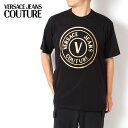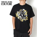 VERSACE 2025年春夏新作【楽ギフ_包装】ヴェルサーチ【トップス】Tシャツヴェルサーチ VERSACE REGULAR FIT サークルロゴ+バロック Tシャツ【BLACK/GOLD】78GAHC01 CJ01C G89/【2025SS】m-tops