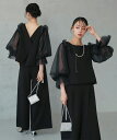 バックコンシャストップス&タックワイドパンツドレス(チュールつけ袖付き)「PA1592」レディース タックワイドパンツ パンツスタイル オケージョン お呼ばれドレス 紺 体型カバー【前後2way/洗える】2025秋冬新作 レディース セットアップ 結婚式 パーティードレス パンツスーツ パンツドレス お呼ばれ オケージョンドレス セレモニー フォーマルスーツ ミセス 50代 40代 30代 上品 きれいめ 華やか 披露宴 二次会 母親 大きいサイズ 黒 即日発送 ギフト