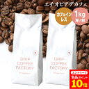 DRIP COFFEE FACTORY 自家焙煎【店内全品ポイント10倍中(要エントリー)】(12/1 9:59迄)コーヒー豆 コーヒー 豆 粉 1kg カフェインレス エチオピア デカフェ ( 500g × 2袋 ) 中深煎り ディカフェ コーヒー粉 珈琲 珈琲豆 送料無料