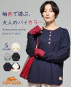季節の変わり目、これ1枚。体温調節が得意な、優秀ワッフルロンT。選べる登山するクリフラビット刺繍!【ブランド直営】 ハニカム ワッフル ワンポイント ロンTレディース トップス Tシャツ サーマル 配色 秋 春 シンプル カジュアル ゆったり 体型カバー 刺繍 ヘンリーネック ウサギ 裾ラウンド ワイド KRIFF MAYER LADYS クリフメイヤーレディース【2026SS】
