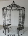 自社直輸入品を自社倉庫から発送しているので安心です!ベンチが付いてて、おしゃれで格好いいガゼボです。大人2,3名で簡単に組み立てられます。★お届け先は九州〜関東のお店様限定★ ゴージャス アイアン製 ガゼボ ベンチ付き ガーデン ファニチャー 屋外 屋根 固定 庭 テラス ベランダ 庭園 おしゃれ エクステリア バラ 誘引 お庭 休憩所 アフタヌーンティー アーチ ゲート 北欧 アンティーク調 大型 カフェ 簡単設置