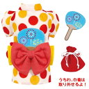 流行のレトロモダンなゆかた☆取り外せるうちわ、巾着付き♪犬服 浴衣 水玉 小型犬 2号ロング 3号ロング 中型犬 6号 大型犬 7号 8号 9号 10号 お祭りグッズ 大きい水玉 わんちゃん浴衣 犬 和服 ドッグウェア ドット