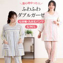 【初秋SALE★20%OFF】パジャマ レディース 七分袖 綿 二重ガーゼ ストライプ柄 パステルカラー 敏感肌 お洒落 肌に優しい 綿 春夏秋 無料ラッピング【初秋SALE★20%OFF】【クーポン対象】\ふわふわガーゼ/パジャマ レディース 七分袖 二重ガーゼ シャーリング 先染 ストライプ柄 綿 春秋 ダブルガーゼ 前開 入院 衿無し 9分丈パンツ 婦人 ナイトウェア S/M/L コットン【nacrure】プレゼント おすすめ ギフト