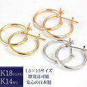 ※商品は1ペアの価格ですのでご安心くださいバネ式 フープピアス ポストもパチッと隠れて使いやすい 1.5mm×14mm 18K 18金 ゴールド 石なし 地金 K18 K14WG K18YG/WG コンビカラーも