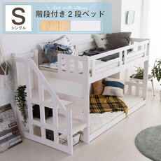 | 【ポイント5倍★1月24日20時〜29日2時迄】階段 二段ベッド 2段ベッド 無垢 天然木 シングル セミダブル 大人 子供 左右対応 宮付き 照明付き コンセント付き 木製 モダン カントリー調 ベット 高さ154 ナチュラル ホワイト 白 分割 送料無料 通販 sanjp-0419