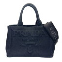PRADA プラダ 1BG439 カナパ ショルダーバッグ ハンドバッグ ZKI KAO エンボスド レタリング 三角プレート キャンバス ブラック 黒