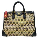 Salvatore Ferragamo フェラガモ ガンチーニ ハンドバッグ トートバッグ 手持ち鞄 肩掛け 総柄 レザー ベージュ ブラック