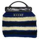 MARNI マルニ マーケット トートバッグ ハンドバッグ ロゴ ストライプ ニットファブリック PVC レザー ブルー ホワイト ネイビー