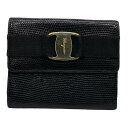 Salvatore Ferragamo フェラガモ 財布 二つ折り財布 折り財布 コンパクトウォレット ヴァラリボン リザード型押しレザー ブラック
