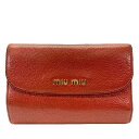 MIU MIU ミュウミュウ 財布 三つ折り財布 折財布 L字ファスナー ミディアムウォレット ロゴ レザー レッド