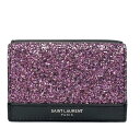 【美品】SAINT LAURENT PARIS サンローランパリ 三つ折り財布 折財布 コンパクトウォレット ミニ財布 グリッター レザー ピンク ブラック