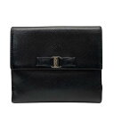 Salvatore Ferragamo フェラガモ ヴァラ 財布 二つ折り財布 折り財布 コンパクトウォレット ロゴ レザー ブラック