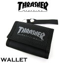 | 【1点までメール便送料無料】スケーター ブランド THRASHER メンズ レディース ユニセックス ベルクロ カード入れ ファスナー 黒THRASHER スラッシャー 財布 3つ折り マジックテープ ウォレット 小銭入れ付き THRSG111