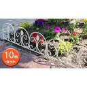 幅約47cm、地上部高さ15.5cm ガーデンフェンス[送料無料]アイアンミニフェンス:リーフ(ホワイト)10枚セット(IPN-7238TG-10P-WHT)