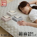 夏用 シャリ感が心地よく爽快!麻混敷きパッド・敷パッド綿麻 敷きパッド シングル 夏用 先染め 敷きパット セミダブル ダブル ひんやりシャリ感のある麻と吸汗抜群の綿の天然綿素材を使用した敷パッド 脱脂綿わた 敷パット ベッドパッド 洗濯OK 日本製