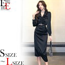 Vネック胸元開き 長袖膝丈セットアップアンサンブル 黒 30代 40代 50代 おしゃれ レディース 韓国 ファッションセットアップ アンサンブル 長袖 袖あり 膝丈 ミディ スレンダー スリット スカート シャーリング セクシー Vネック 胸元 胸開き 大人 上品 きれいめ おしゃれ セット コーデセット オケージョン キャバ スナック ラウンジ 黒 ブラック 20代 30代 40代 韓国 レディース 秋 冬