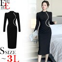 シンプルタイトスタイル ビジュー使い 膝丈長袖ワンピース 黒 20代 30代 40代 50代 おしゃれ レディース 韓国 ファッション【50%OFFセール】ワンピース 膝丈 ミディアム 長袖 袖あり ワンピ タイト タイトワンピース 細身 大人 上品 キレイ目 清楚 お呼ばれ 結婚式 二次会 発表会 パーティー セレモニー キャバ スナック ラウンジ ママ ビジュー 20代 30代 40代 50代 黒 ブラック 服 韓国 秋 冬