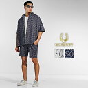 SOMEDIFF(サムディフ)『総柄半袖シャツセットアップ』セットアップ メンズ オーバーサイズシャツ + ハーフパンツ メンズ サマーセットアップ 大きいサイズ ブランド 総柄 ロゴ カジュアルシャツ メンズ 薄手 青 グレー ストレッチ グレー ネイビー 春 春服 春物 春夏 メンズファッション リゾート サーフ系 ちょいワル お兄系