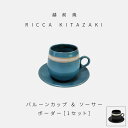 【福井県越前町】 送料無料!丸いボディに繊細なハンドルがついたモダンなカップと小さいソーサー。【ふるさと納税】【越前焼】RICCA KITAZAKI「バルーンカップ・ボーダー & ソーサー 1セット」(ターコイズブルー or スチールグレー)【福井県 伝統工芸品 陶器 陶磁器 マグカップ コーヒーカップ おしゃれ】【選べる2色】 [e50-a002]