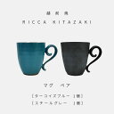 【福井県越前町】 送料無料!流れがきれいなハンドル、ソフィスティケートなマグ。【ふるさと納税】【越前焼】RICCA KITAZAKI 「マグ ペア」(ターコイズブルー & スチールグレー 各1個)【福井県 伝統工芸品 陶器 陶磁器 マグカップ コーヒーカップ おしゃれ】 [e50-b001]