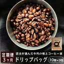 質の高い新鮮なコーヒーを手軽にカップで淹れてみませんか?月に1回届く定期便。【ふるさと納税】 【3ヶ月定期便】 自家焙煎 ドリップコーヒー 合計30杯分 ドリップバッグ 12g×10個×3回 ドリップコーヒー 珈琲 珈琲豆 挽きたて 新鮮 ドリップ コーヒー 珈琲 定期便