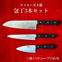 たたら製鉄の技術を受け継ぐ高級特殊鋼「ヤスキハガネ」を使用したオールハガネの包丁【ふるさと納税】ヤスキハガネ製 包丁3本セット(三徳包丁・柳刃包丁・中出刃包丁)/ ヤスキハガネ 包丁 出刃包丁 ナイフ 切れ味抜群 おしゃれ 高級 万能 錆びにくい セット 基本セット 料理 キッチン用品 鋼 全鋼 ギフト 贈り物 ご自宅用 島根県 安来市