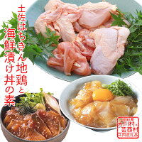 旨味濃厚な地鶏ととろける海鮮丼セット!【ふるさと納税】【大川村と芸西村の共通返礼品】はちきん地鶏 まるごと一羽おためしセット 約1kg&真鯛とブリの漬丼の素セット 800g 地鶏 もも肉 むね肉 ささみ 手羽先 手羽元 真鯛 ぶり 鰤 丼 海鮮 どんぶり 高知県 大川村 F6R-017